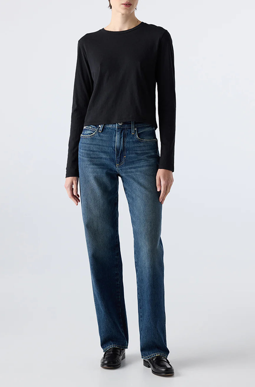 A high rise straight leg with a subtly slouchy feel. Easy through the hip and thigh, featuring a long inseam that’s perfect for a bit of stacking. Finished with a denim hem. Zip fly.