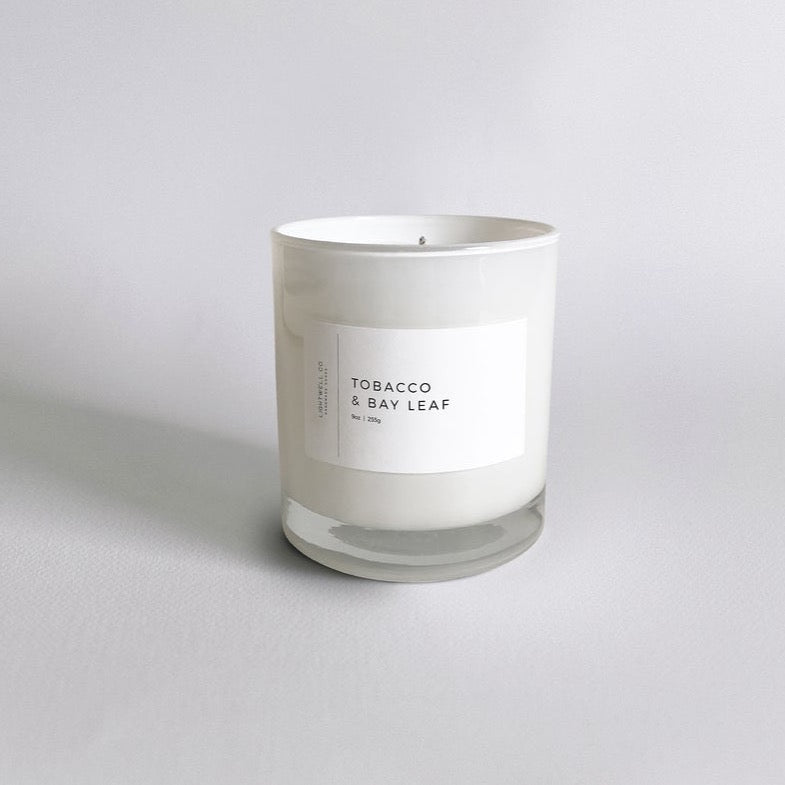 Lightwell Co. – Tobacco & Bay Leaf White Tumbler Candle