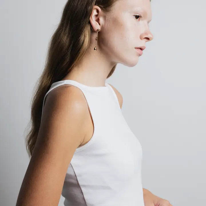 • Bean shaped dangle earring • 14k Gold plated over recycled brass • 14k Gold vermeil hypo-allergenic ear posts