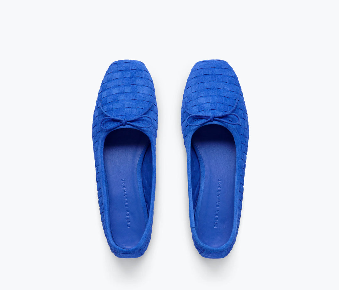 Freda Salvador – Jada Square-Toe Woven Flat in Cobalt Suede