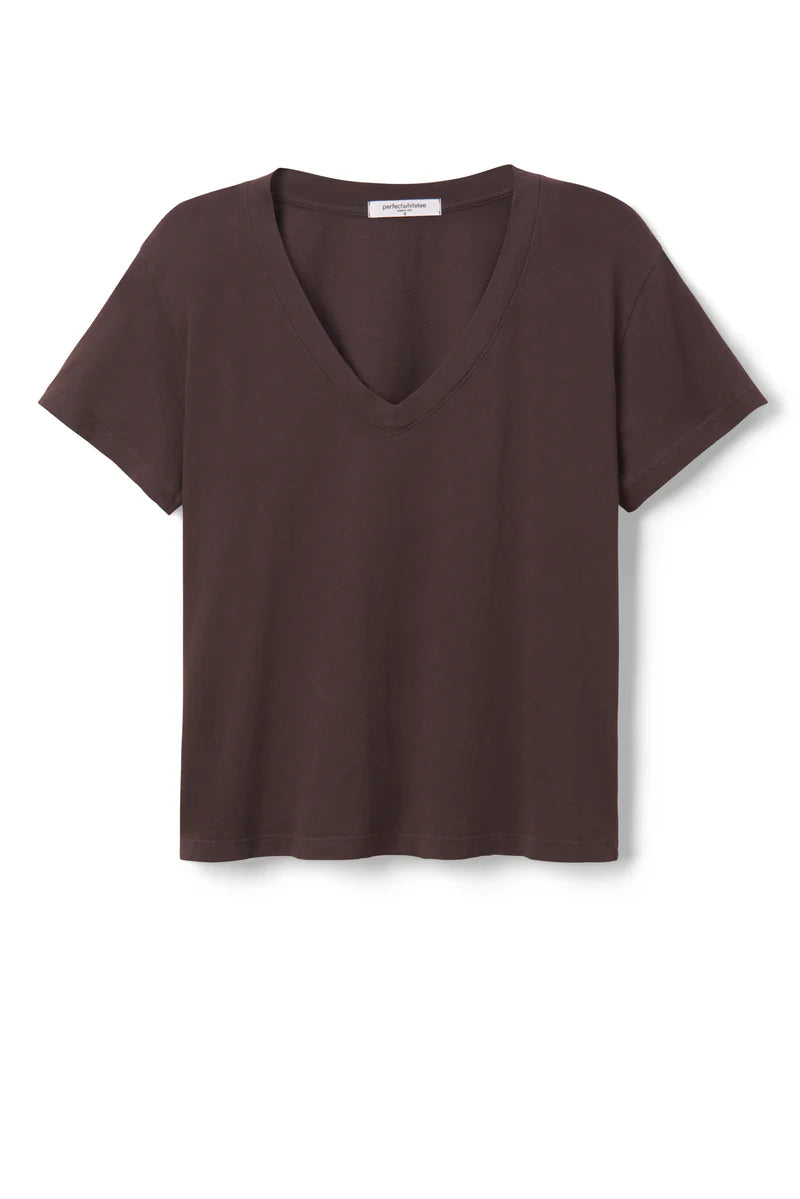 the perfect, slightly-oversized v-neck tee. it’s sexy, but not too sexy. the essential staple piece you will want to live in. hits just below mid-rise denim. we curated the perfect hues for any wardrobe. get a few, they will be forever your favorite.