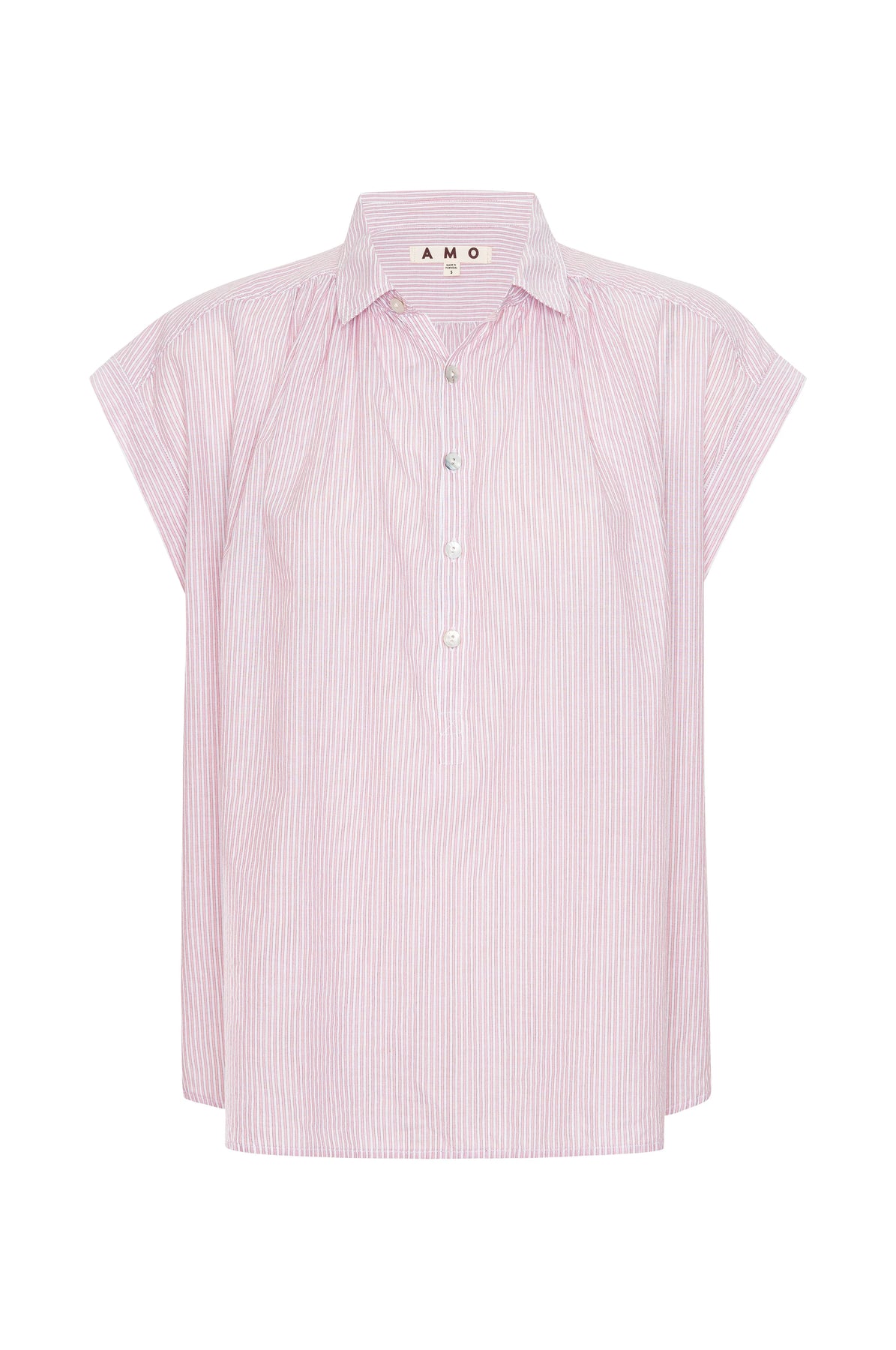 Crafted from breathable voile, this everyday go-to piece is a must-have for your wardrobe. Featuring a dropped shoulder, partial button placket, and feminine cap sleeves, this top is easy to mix and match, making it effortlessly cool. Shirring at the shoulders adds ease and fullness throughout the body.