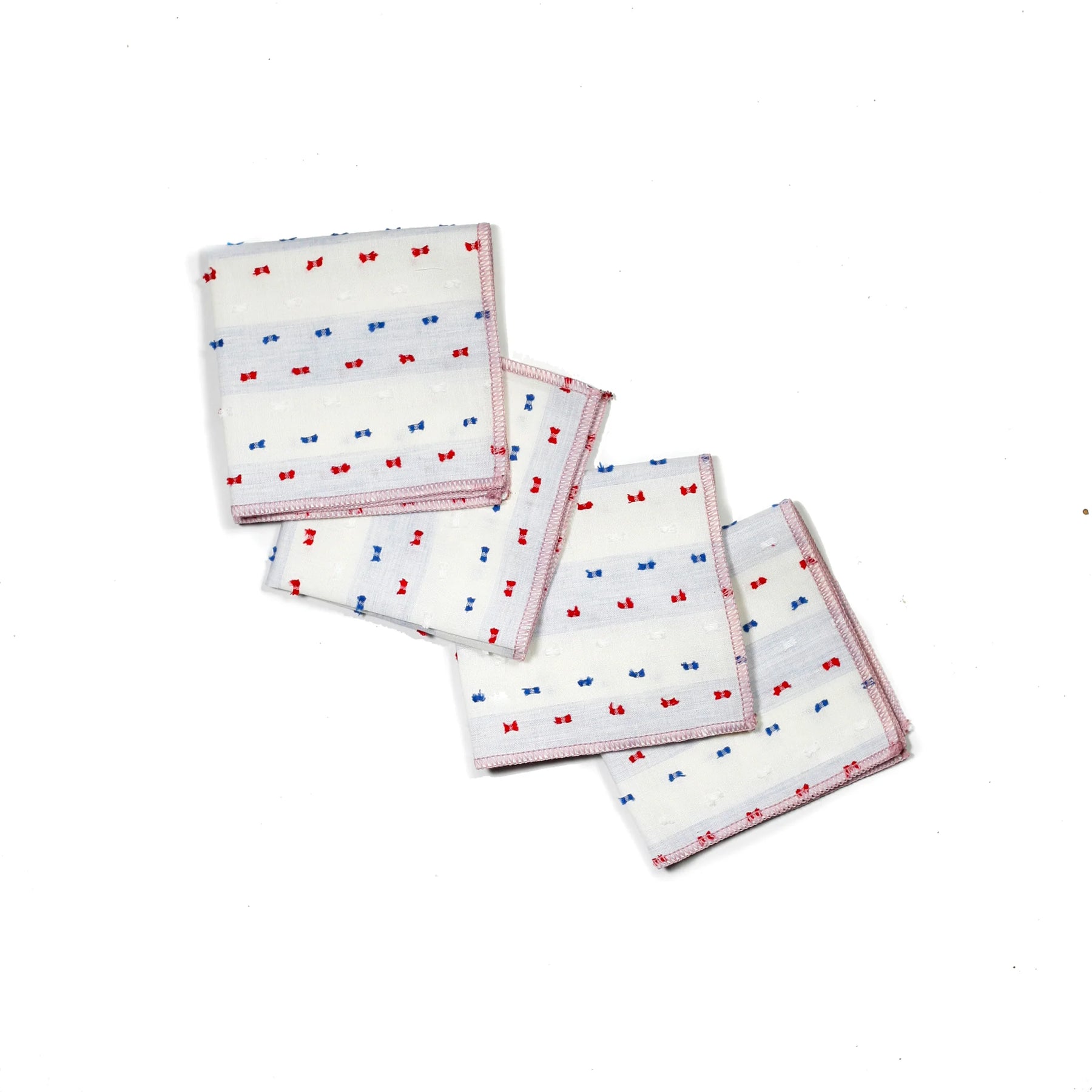 Who could resist this adorable swiss dot style, full of rows and rows of bows!? Perfectly prim, in a modern color palette of primary colors — the Bows cloth napkins add a touch of femininity and sweetness. Our cocktail napkins sets are impossibly soft, easy-to-care-for, and round out housewarming gifts and well-stocked cocktail gift baskets.